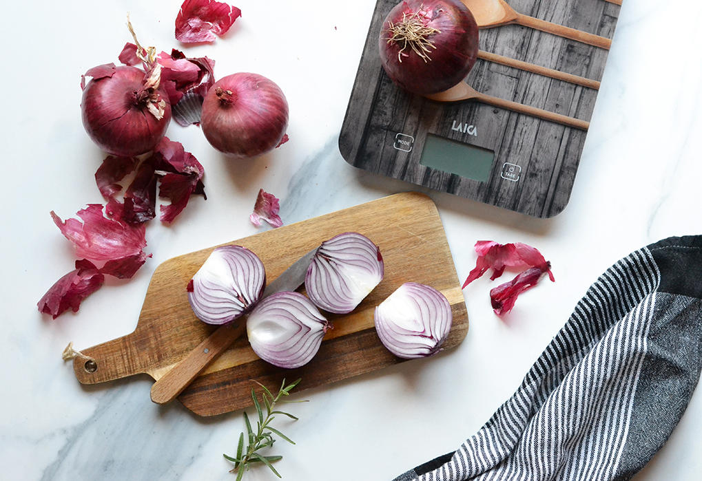 Saca las cebollas de la bolsa.