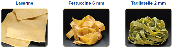 | ACCESORIOS DISPONIBLES (NO INCLUIDO) | Rodillos de corte SENCILLO: • Código APM003 para hacer los “capelli d’angelo” (1 mm) Rodillo de corte DOBLE: • Código APM006 para hacer los “pappardelle” (45 mm) |